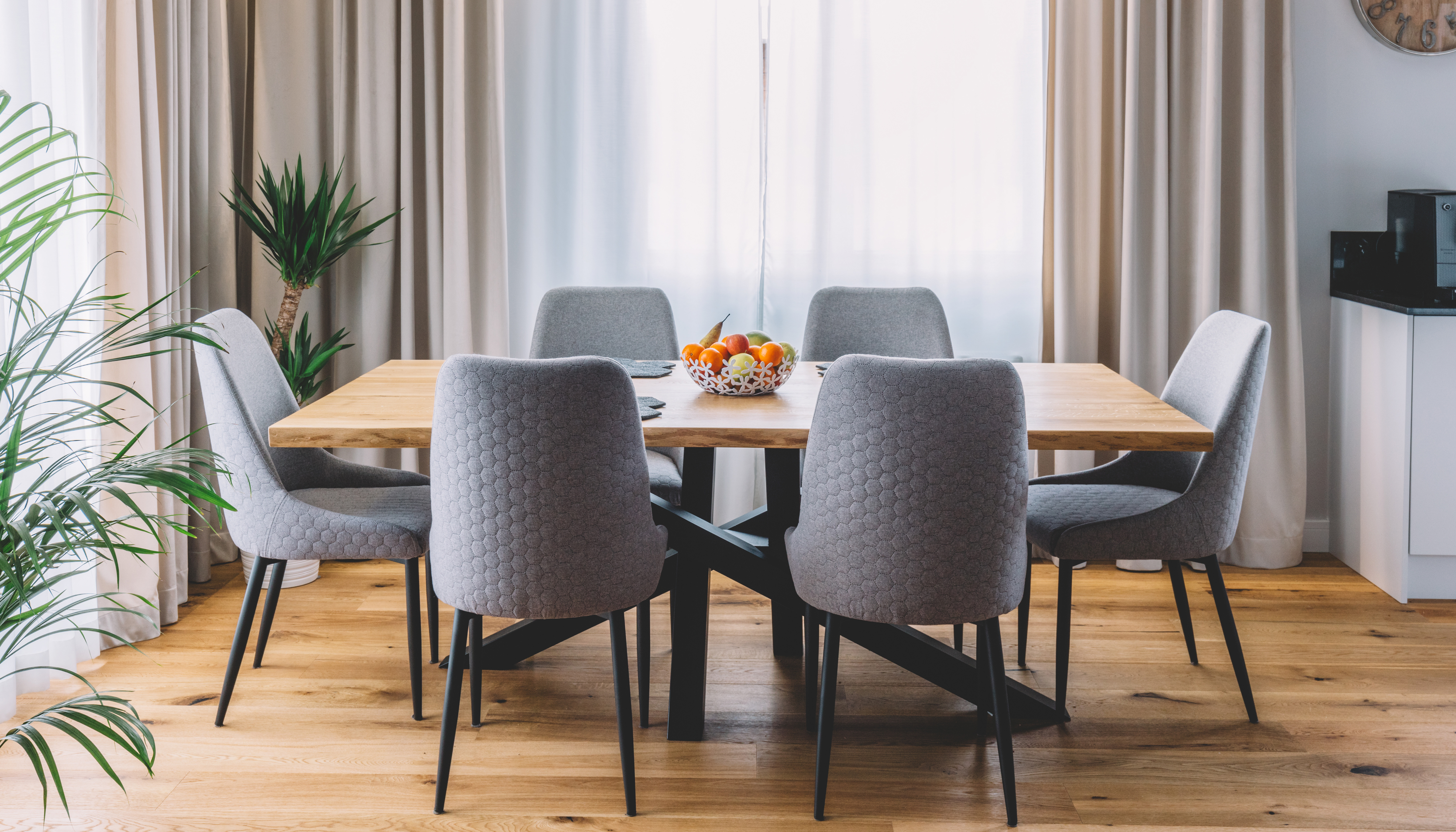 - bequeme Stühle fürs Esszimmer, die in Höhe, Stil und Komfort zum Tisch passen,