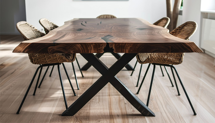 Viele Modelle verbinden traditionelle Tischlerkunst mit modernen Details wie etwa Metallgestellen oder klaren Formen. Besonders gefragt sind Esstische mit Baumkante: Hier bleibt die ursprüngliche Form des Holzes sichtbar und verleiht dem Tisch seinen individuellen, natürlichen Charakter. Kein Stück gleicht dem anderen – das macht Massivholztische zu echten Einzelstücken.